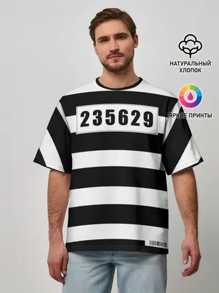 Мужская футболка оверсайз / Костюм заключенного