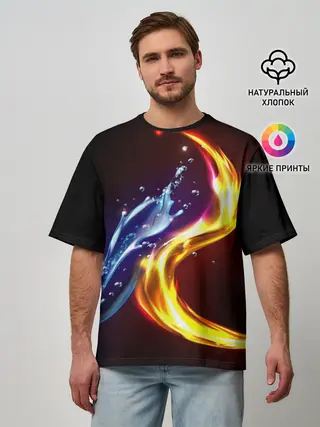 Мужская футболка оверсайз / ОГОНЬ И ВОДА