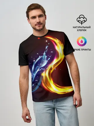 Мужская базовая футболка / ОГОНЬ И ВОДА