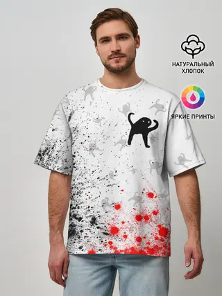 Женская футболка оверсайз / МЕМ КОТ ЪУЪ СЪУКА