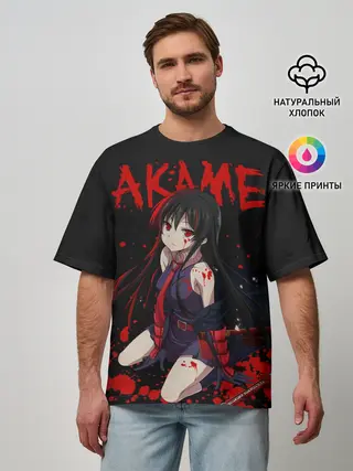 Мужская футболка оверсайз / Убийца Акаме на черно-красно фоне