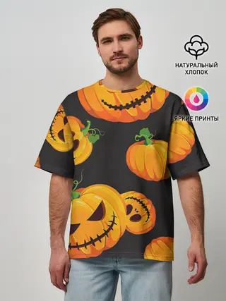 Мужская футболка оверсайз / Весёлые тыквы