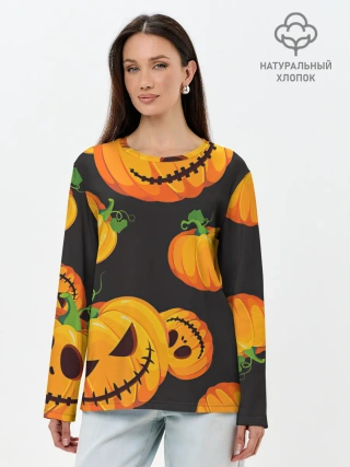 Лонгслив женский. Хлопок / Весёлые тыквы
