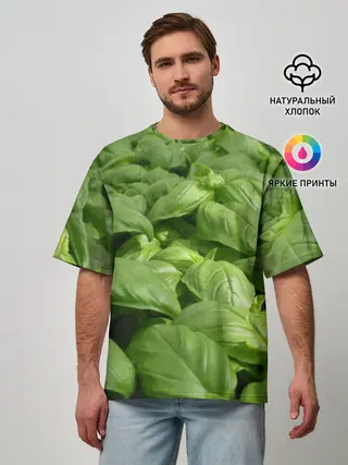 Мужская футболка оверсайз / Неоновый базилик
