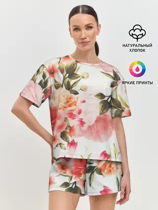 Женская пижама с шортами / Нежный букет