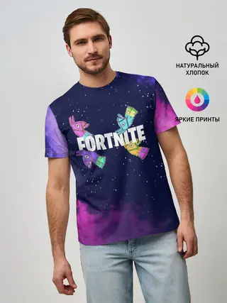 Мужская футболка оверсайз / Ламы фортнайт в космосе