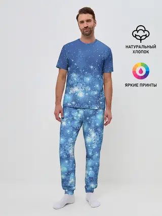 Мужская пижама с брюками / Снежинки.