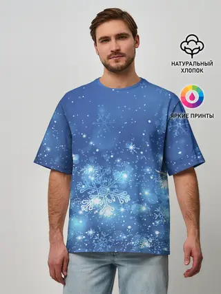 Мужская футболка оверсайз / Снежинки.