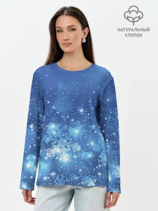 Лонгслив женский. Хлопок / Снежинки.