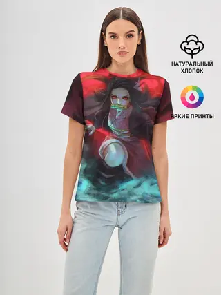 Женская футболка оверсайз / Незуко Камадо Клинок, рассекающий демонов