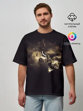 Мужская футболка оверсайз / Череп и часовой механизм.