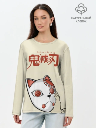 Лонгслив женский. Хлопок / Маска Танджиро Камадо