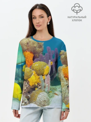 Лонгслив женский. Хлопок / Морской мир