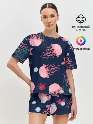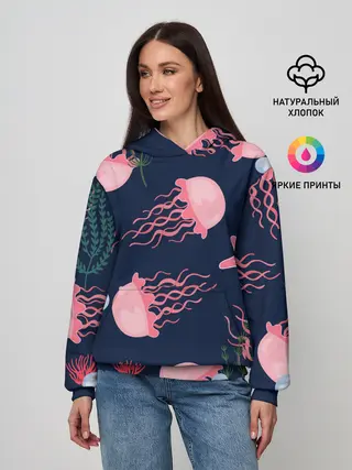 Женская футболка оверсайз / Рисованные сказочные рыбки