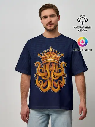 Мужская футболка оверсайз / Кракен в короне