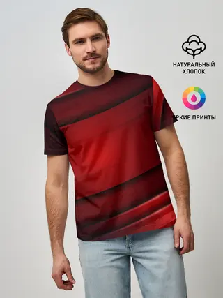 Мужская базовая футболка / 3D red Абстрактные линии