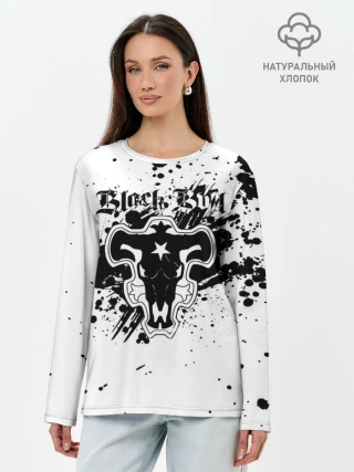 Лонгслив женский. Хлопок / Черные быки брызги Чёрный клевер