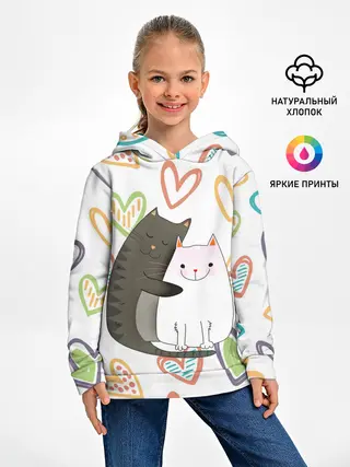 Женская футболка оверсайз / мультяшные котики на желтом мя