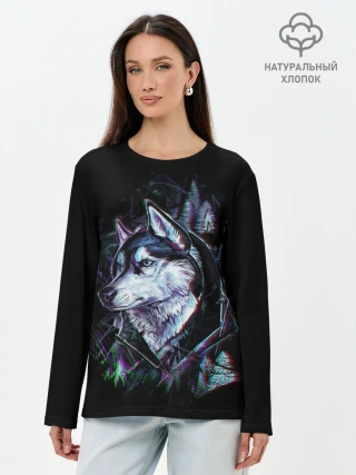 Лонгслив женский. Хлопок / Волк