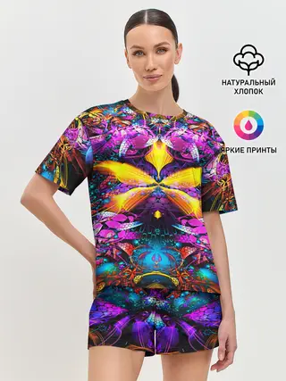 Женская футболка оверсайз / Неоновые бабочки