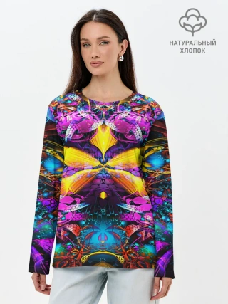 Лонгслив женский. Хлопок / ФРАКТАЛЬНЫЕ ЦВЕТЫ