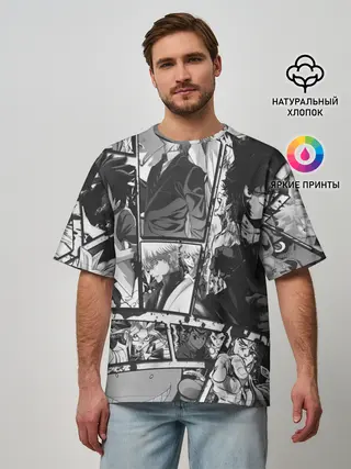 Мужская футболка оверсайз / EPIC MAIN ANIME CHARACTERS 3D! monochome