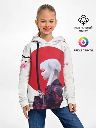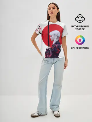 Женская футболка оверсайз / ДЕВУШКА В КИМОНО И ПТИЦАМИ