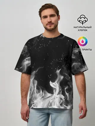 Мужская футболка оверсайз / БЕЛЫЙ ОГОНЬ | WHITE FIRE