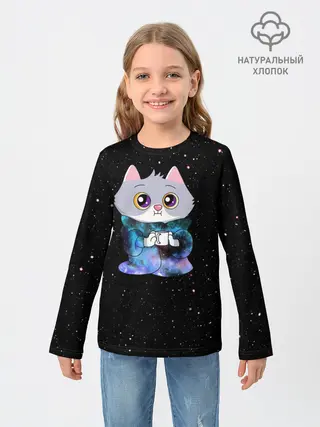 Детский лонгслив / Котёнок в пледе