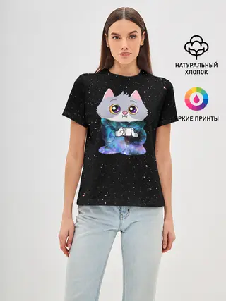 Женская базовая футболка / Котёнок в пледе