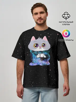 Мужская футболка оверсайз / Котёнок в пледе
