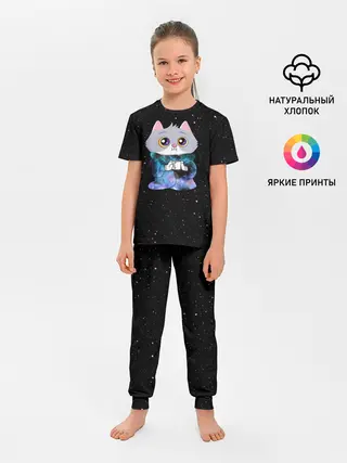 Детская пижама с брюками / Котёнок в пледе