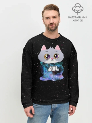 Мужской свитшот базовый / Котёнок в пледе
