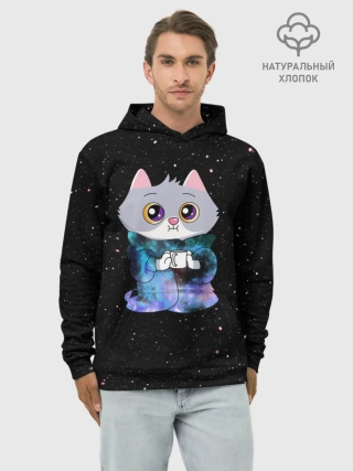 Худи мужской база хлопок / Котёнок в пледе