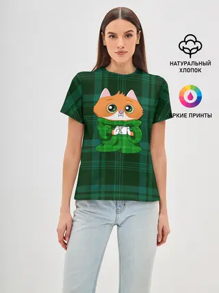 Женская базовая футболка / Котёнок в пледе