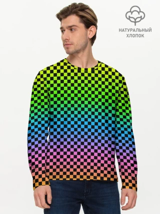Мужской лонгслив базовый / РАДУЖНАЯ ШАХМАТКА