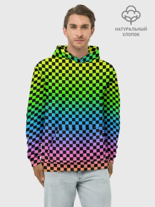 Худи мужской база хлопок / РАДУЖНАЯ ШАХМАТКА