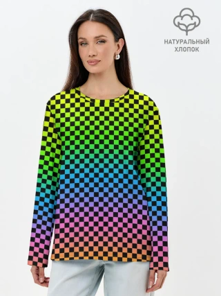 Лонгслив женский. Хлопок / РАДУЖНАЯ ШАХМАТКА