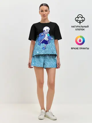 Женская футболка оверсайз / Undertale Sans | Glitch