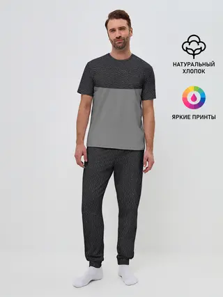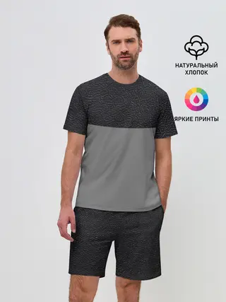 Мужская пижама с брюками / текстура черная кожа рельеф