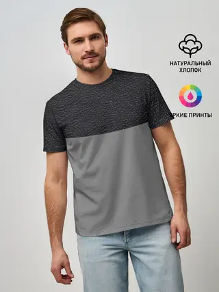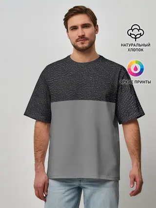 Мужская футболка оверсайз / текстура черная кожа рельеф