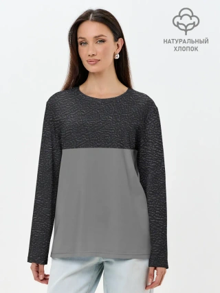 Лонгслив женский. Хлопок / текстура черная кожа рельеф