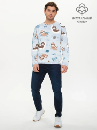 Мужской лонгслив базовый / Паттерн ленивец космос полет
