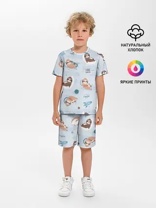Детская пижама с шортами / Паттерн ленивец космос полет