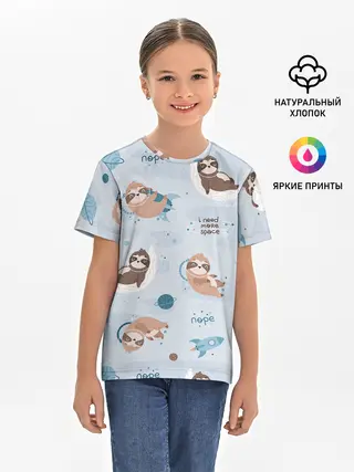 Детская пижама с брюками / Паттерн ленивец космос полет