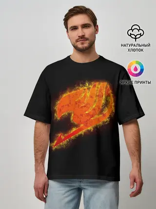 Мужская футболка оверсайз / burning helmet Fairy Tail