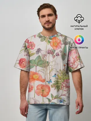 Мужская футболка оверсайз / Цветы