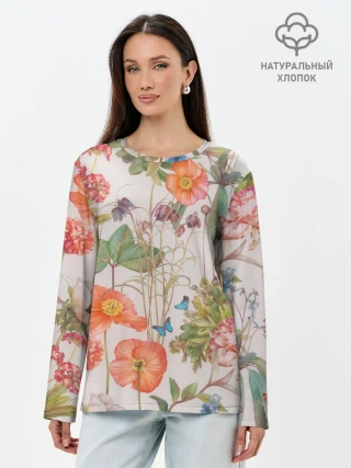 Лонгслив женский. Хлопок / Цветы