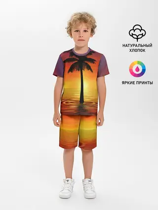 Детская пижама с шортами / ТРОПИЧЕСКИЕ ПАЛЬМЫ.