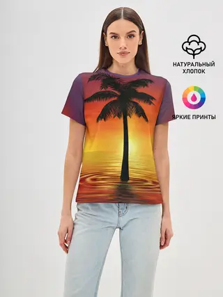 Женская базовая футболка / ТРОПИЧЕСКИЕ ПАЛЬМЫ.